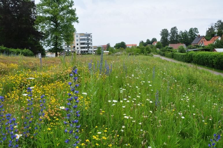 I stadsparken i Laholm har en fjärilsäng anlagts med flera olika ängsfröblandningar.